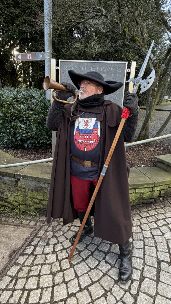 Um 16 Uhr trafen wir uns mit dem „Nachtwächter“ Gustav am Hackenberg (Lothar Vieler) am Lenneper Röntgenmuseum.